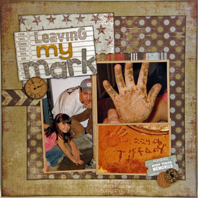 This layout was also based on a sketch from Sketchy Thursdays it was the Dec 29th sketch. Which I had done but forgot to photograph by the deadline. Oh well I'm posting it now anyways, besides the photos are almost 6 years old. On the "Mark" alphas they were plain chipboard letters that I stamped with Grey paint.
